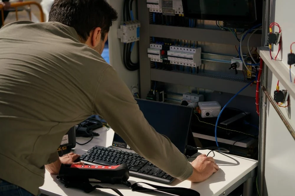 Enables precise X/Y/Z movement via motorized trolleys on mast/truss.